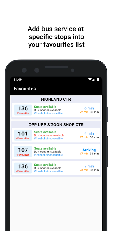 Do note that by default, bus timings are automatically updated once per minute. You may however disable or modify this in the settings page.