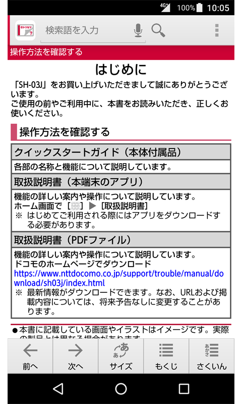「SH-03J」の取扱説明書として閲覧できるだけでなく、一部の機能については説明文から端末設定などを直接起動することができますので、SH-03Jをより便利にお使い頂けます。