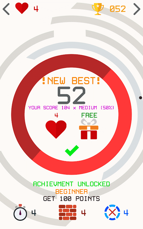 Your have 4 lives you can use. They refill after some time, but be cautious - once you have no lives left, you will not get any points or achievements! You have been warned!