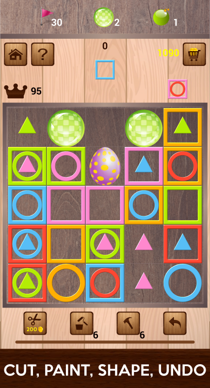 * Arrange and stack the same shapes with same color on vertical, horizontal or diagonal lines.