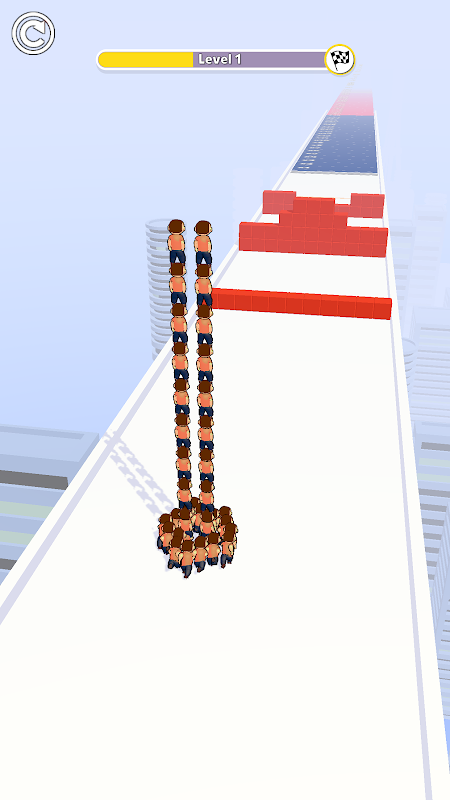 Pass the gates to make biggest crowd and use that to pass obstacles.