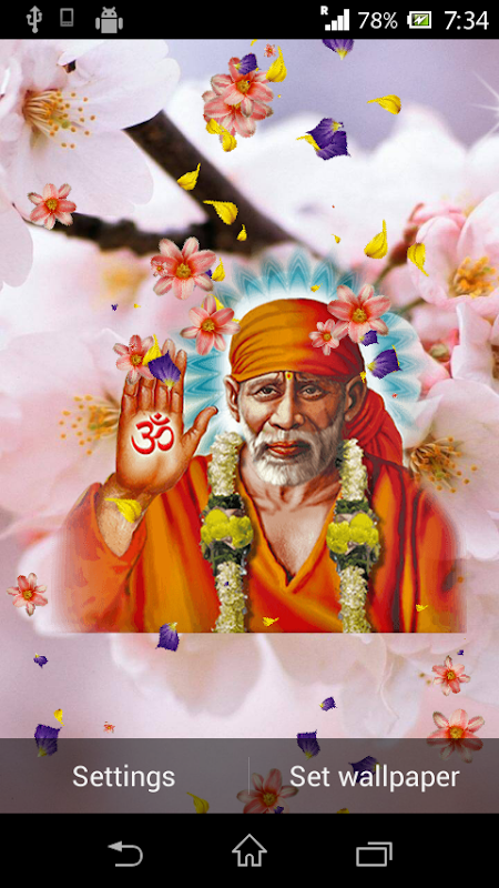 "Sai Baba Live Wallpaper" app contains multiple Images Lord Sai and you can easily control the flowers,petals animation speed by setting options. choose various types objects.move up and down the animation.