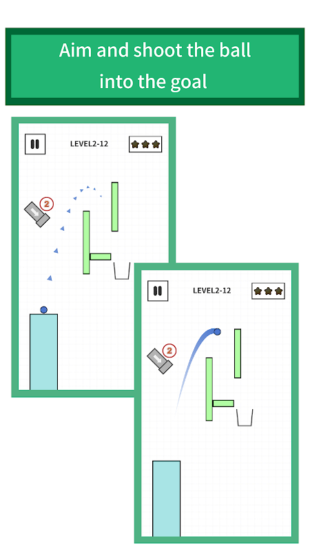 Your job is to aim and shoot ball into the goal. You can get 3 stars if you shoot 3 balls into the goal, Although every time you shoot the ball into the goal it gets harder.