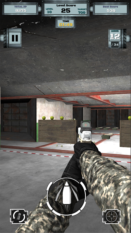- ہمیشہ کے لئے target ہر ہدف کے ل you آپ کو وقت کا بونس ملے گا اور کھیل کے ساتھ جاری رکھیں گے۔ پستول کو تھام لو اور نتیجہ آئے گا۔