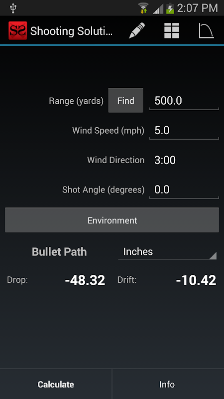 Shooting Solution Free is an accurate, easy to use ballistics calculator. It utilizes a simple main interface, but includes more advanced features, such as table creation and graphing. Environmental conditions, which can be updated based on GPS location or latitude/longitude, are accounted for in the calculations.