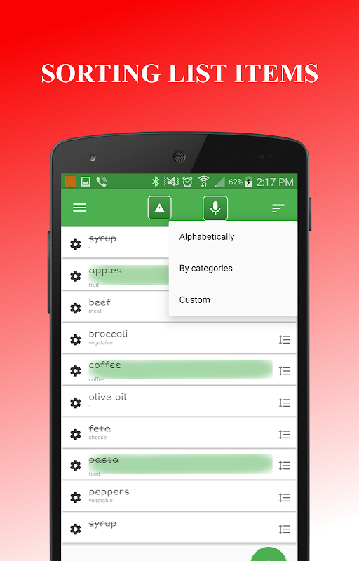 - وائس ان پٹ! صوتی کمانڈ کے ساتھ اپنی خریداری کی فہرست میں آئٹمز شامل کریں - مائیک آئیکن پر کلک کرنے کے بعد صرف بات کر کے فہرست میں آئٹمز شامل کرنا بہت آسان ہے تاکہ ایپ آپ کو سننا شروع کر دے آپ کو صرف ان آئٹمز کے نام بولنا ہوں گے جو آپ بولیں۔ اس طرح شامل کرنا چاہیں گے جیسے: دودھ، بیئر، سوڈا، کافی، کیلے، دودھ شیک، پیزا اور ایپ آپ کی کہی ہوئی چیزوں کو پہچان لے گی اور ہر ایک کو فہرست میں ایک آئٹم بنائے گی۔