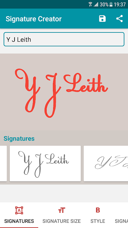 Auto Signature Creator represents an intuitive signature platform that allows you to create your own create signature on Android phone.