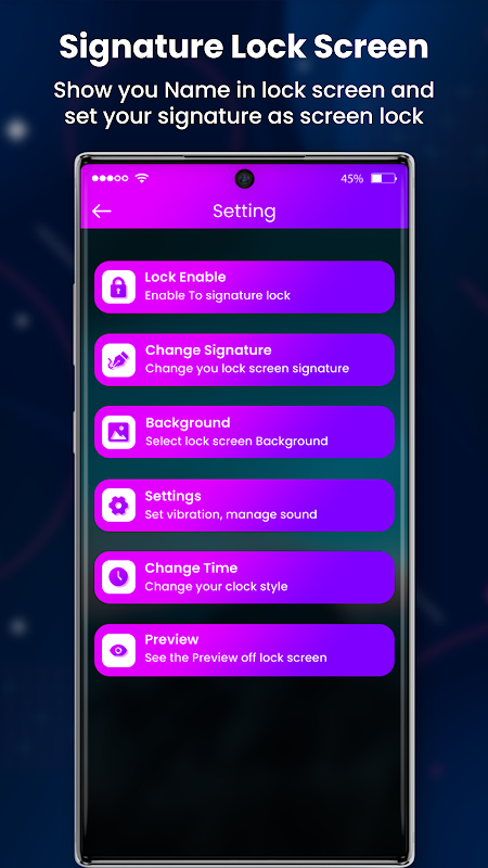 • سادہ یوزر انٹرفیس اور استعمال میں آسان سگنیچر لاک اسکرین ایپ۔