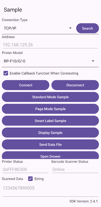 یہ ایپ آپ کو SII کی طرف سے فراہم کردہ پرنٹ کلاس لائبریری کا استعمال کرتے ہوئے Seiko Instruments Inc. (SII) کے پرنٹر پر ٹیکسٹ یا بارکوڈ پرنٹ کرنے کی اجازت دیتی ہے۔