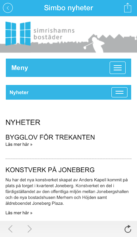 Med Simrishamns Bostäders APP - SIMBO APP - kan du söka bostad och få nyttig information från Simrishamns Bostäder.