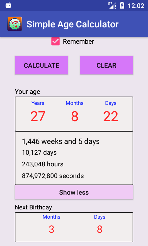 کے پرانے ورژن Simple Age Calculator - age by date of birth
