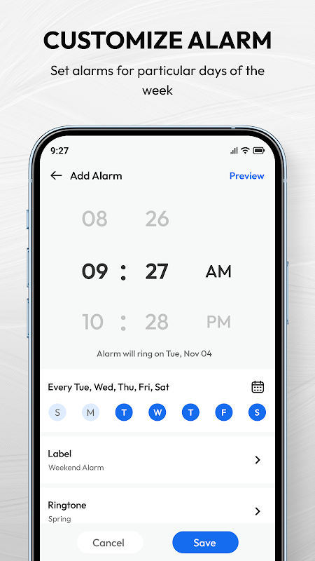 📅 الارم روزانہ، ہفتہ وار یا مخصوص دنوں میں طے کریں۔