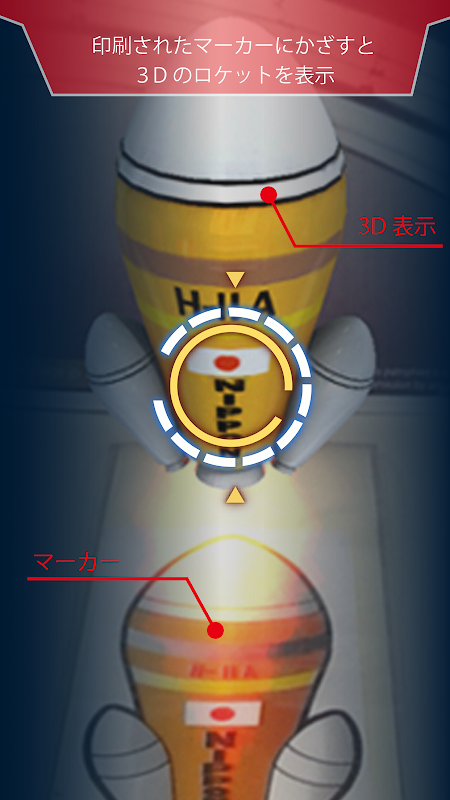 「マーカー」とされた画像や写真をカメラ画面でかざすと、