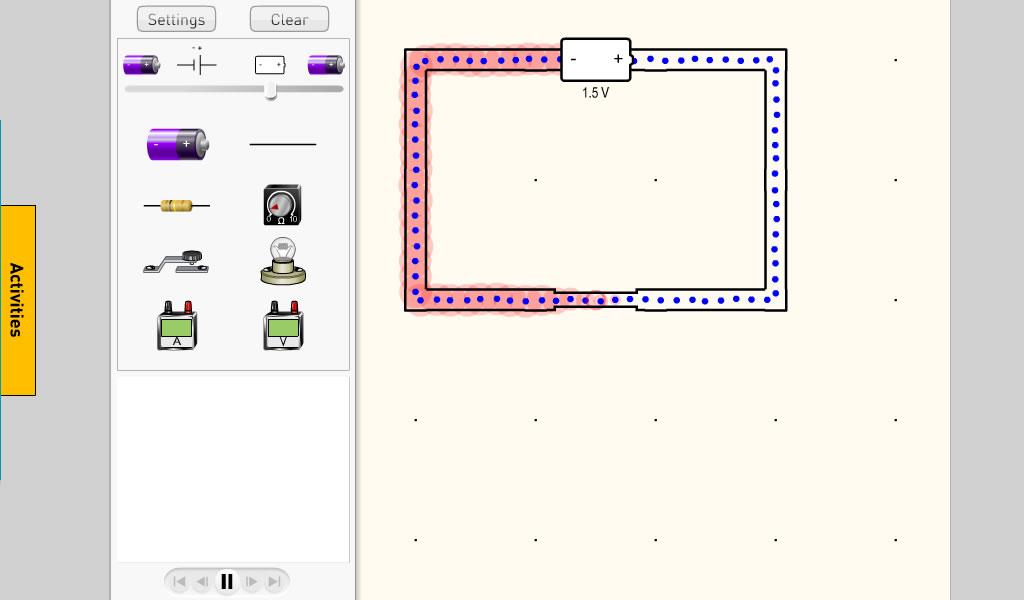 Simple Circuits lets you make virtual circuits. You can then visualise your circuit with pictures, diagrams, or with electrons flowing through the components. You’ll use it to cover: