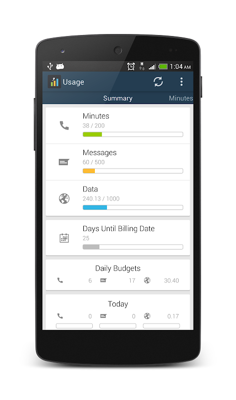 A lightweight app to keep track of your minutes, messages and data usage.