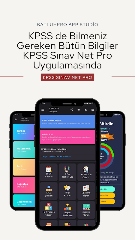 SINAV NET Pro ایپلی کیشن ایک ایسی ایپلی کیشن ہے جو KPSS کورسز اور امتحانات کے مضامین میں امیدواروں کی مدد کرتی ہے۔ اسے امیدواروں کو آسانی سے معلومات فراہم کرنے کے لیے بنایا گیا تھا تاکہ وہ جنرل اپٹیٹیوڈ اور جنرل نالج کے امتحانات اور اوسطاً 120 سوالات کے ساتھ ٹیسٹ میں زیادہ واضح ہو سکیں۔ KPSS SINAV NET Pro ایپلی کیشن ایک اسسٹنٹ ہے جو امیدواروں کے اسمارٹ فونز پر موجود معلومات کو جانچ کر اور پڑھ کر ہر لحاظ سے ان کے ساتھ ہوتا ہے اور ان کی کامیابی کو بڑھانے میں مدد کرتا ہے۔