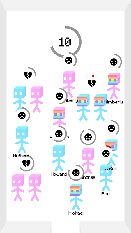 Tap on the endless spawning singles entering the room and drag them to a compatible partner.