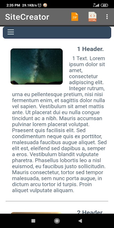 ✔ ایپلیکیشن کے مفت ورژن میں، آپ ترمیم کے لیے پہلے دو ٹیمپلیٹس استعمال کر سکتے ہیں۔ تمام ٹیمپلیٹس تک مکمل رسائی کے لیے، آپ Site Creator Pro ایپلیکیشن کا ادا شدہ ورژن سستے خرید سکتے ہیں: