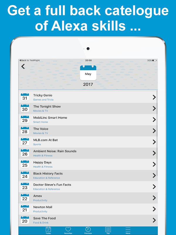 Not sure what cool things you can do with your Alexa powered device? With this app you can see our recommended Alexa skill of the day, collect your favourite Alexa skills, look at previously recommended Alexa skills, and checkout the charts for the top must have Alexa skills.