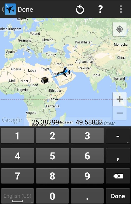The app comes with an offline map where you can choose your location (you can know your location based on plane entertainment screen information). After you pick your location, the shortest path to Makka will be drawn from the plane location which shows the Qibla direction. After that you can see the prayer times at that location as well.