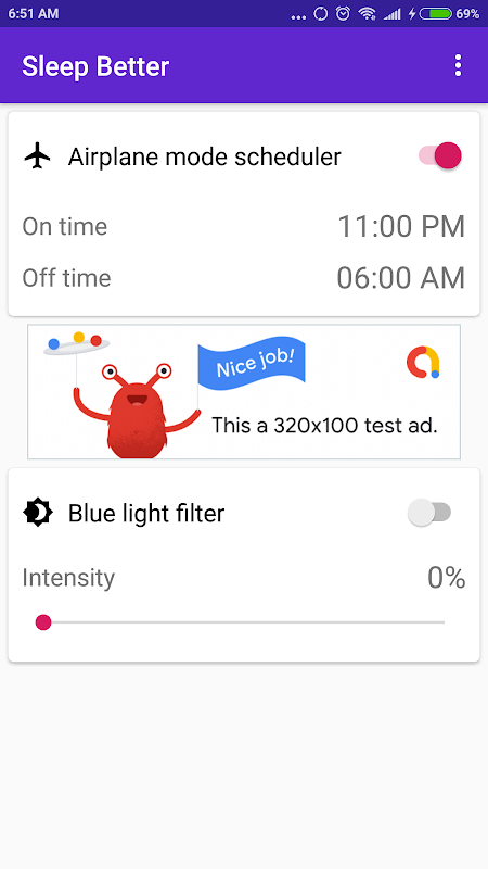 Sleep Better is a combination of 2 features: Airplane mode scheduler and Blue light filter