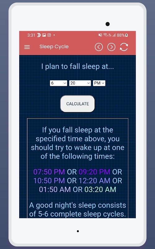 This calculator aims to help you avoid this by counting backwards in sleep cycles of 90 minutes to help you wake up feeling refreshed.