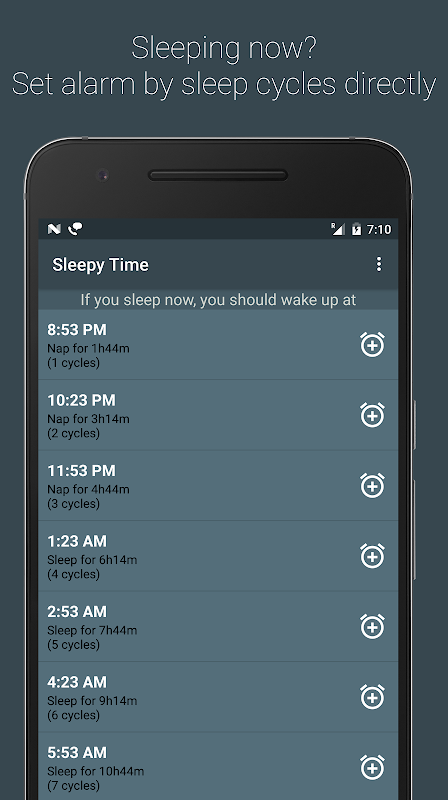 A good sleep is one of the most important things for good health. No one likes to get up from a good sleep. Waking up during a sleep cycle makes you feel grumpy. Sleep occurs in cycles. A sleep cycle has varied lengths and occurs in different phases during your sleep. This app takes care of all the sleep cycle calculations and lets you wake up when you are in a very mild state of sleep.
