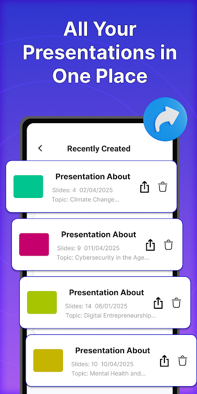 اپنے پریزنٹیشن گیم کو سلائیڈز کے ساتھ تبدیل کریں: AI پریزنٹیشن میکر! دنیاوی سلائیڈوں کو الوداع کہیں اور دلکش پیشکشوں کو آسانی سے ہیلو۔ اپنے ورک فلو میں انقلاب لائیں اور چمکیں جیسے پہلے کبھی نہیں! 🌟