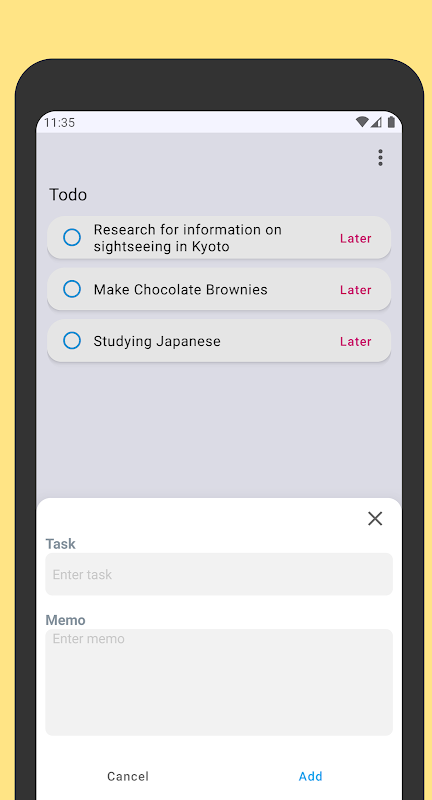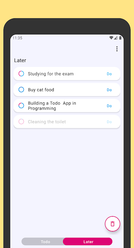 Once you've added a task to your to-do list, when you don't feel like doing it anymore, you can actively put it off!