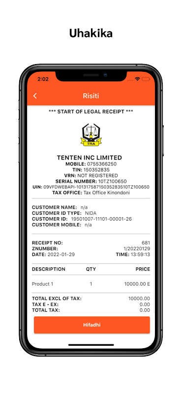 Application inayokuwezesha kutoa risiti za mauzo zilizopitishwa na TRA kwa kutumia simu yako kirahisi na uhakika zaidi.
