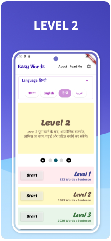 آسان انگریزی آپ کی زبان/لفظ سیکھنے کی ایپ ہے- ہندی، بنگلہ، عربی اور انگریزی