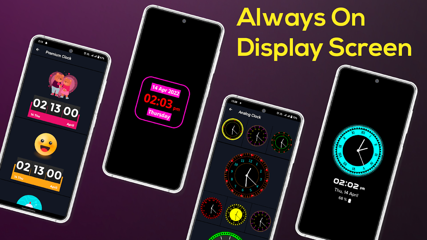 ینالاگ، ایل ای ڈی، ڈیجیٹل، سمارٹ گھڑیوں پر مشتمل ہمیشہ ڈسپلے لاک اسکرین کلاک پر