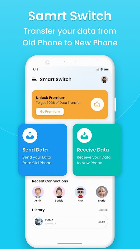 اسمارٹ سوئچ ڈیٹا ٹرانسفر ایپ کی بدولت آپ کے پرانے فون سے نئے فون میں ڈیٹا کی آسانی سے منتقلی ایک ہوا کا جھونکا بن گئی ہے۔ سمارٹ سوئچ ٹرانسفر آل ڈیٹا ایپ کا استعمال کرتے ہوئے اب آپ تمام ڈیٹا کی منتقلی کی پریشانیوں کو الوداع کہہ سکتے ہیں۔ چاہے اس کی تصاویر، ویڈیوز، موسیقی، فائلیں، یا رابطے، فون کی منتقلی فون کلون ایپ کے ساتھ صرف چند ٹیپس کے ساتھ بغیر کسی رکاوٹ کے منتقلی کو یقینی بناتی ہے۔