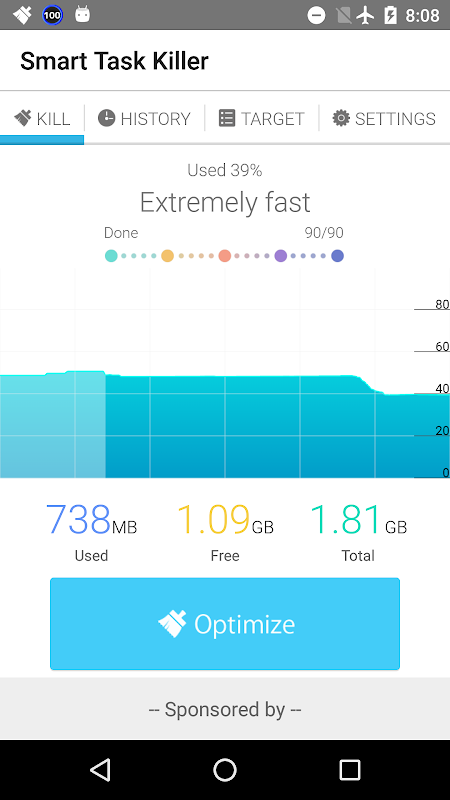 The amount of memory used is displayed in an easy-to-see graph. It can also automatically kill tasks to make everyday usage faster and your battery last longer.