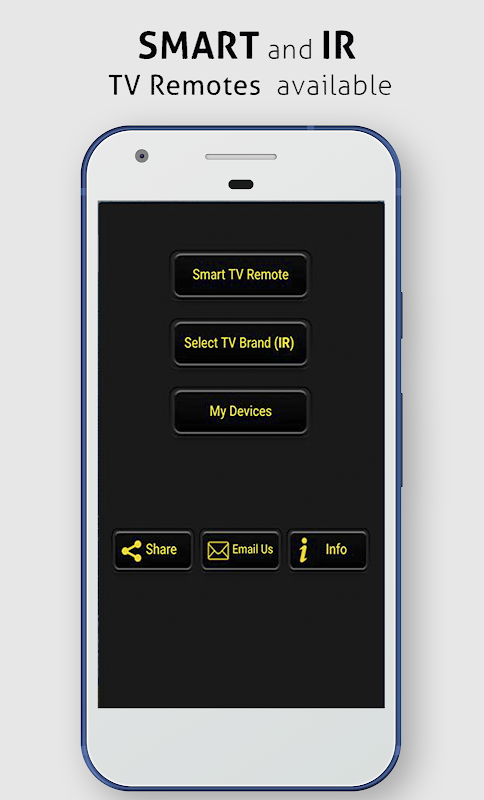 سمارٹ یونیورسل ریموٹ کنٹرول ٹی وی کی خصوصیات فی الحال آئی آر ریموٹ کنٹرول سونی براویا اینڈرائیڈ ٹی وی، ایل جی اسمارٹ ٹی وی، روکو، گوگل کروم کاسٹ، اینڈرائیڈ ٹی وی اور ایپل ٹی وی ریموٹ کے لیے ٹی وی کنٹرول دستیاب ہیں۔