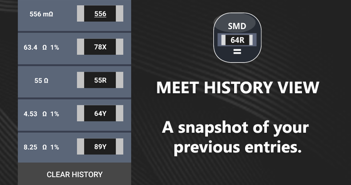4 مختلف کوڈ کی اقسام کے لئے ریسسٹر ایس ایم ڈی کوڈ کیلکولیٹر ہمارے انجینئرز اور شائقین کے لئے ہلکا پھلکا ، مفت متبادل ہے۔ بغیر اشتہارات والا ایک مکمل ورژن۔