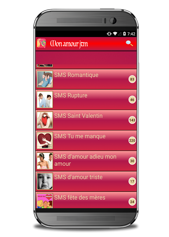 Des centaines de messages à envoyer Par Sms , Facebook, email, Twitter .... Dans cette application, vous pouvez trouver une base De donner de plus de des meilleurs messages SMS d'amitie SMS d'amour et des poèmes d'amour etc … une Base de données de plus de 2700 des SMS Gratuit classer par 23 catégories : SMS Romantique, SMS Anniversaire, SMS Bonne Année, SMS Je t'aime, SMS Saint Valentin , SMS Bonjour, SMS Pour Lui, SMS Pour elle, SMS Bonne nuit , SMS Tu me manque , SMS Voeux Joyeux Noel, SMS Bon weekend, SMS Bonne chance, SMS d'amour triste, Top SMS d’amour , SMS Drague, SMS Bisous d'amour, SMS De Sagesse, SMS Rupture, Lettre Citation d'amour, SMS fête des mères, SMS je pense a Toi , SMS d'amour adieu mon amour,