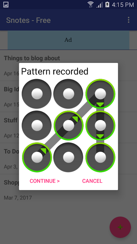 اگر کوئی اور آپ کا فون اٹھا کر دیکھتا ہے اور اس ایپ کو دیکھتا ہے تو ، یہ صرف نوٹ کیپنگ کے ایک اطلاق کی طرح نظر آئے گا۔ لیکن وہ در حقیقت جعلی نوٹوں کا ایک گروپ دیکھ رہے ہیں۔ غیر مقفل اسکرین شو کو بنانے کے لئے کوئی بھی سکگلی ڈرا۔ جب آپ صحیح انلاک پیٹرن داخل کرتے ہیں تو جعلی نوٹ چھپ جاتے ہیں اور آپ کے اصلی نوٹ دکھائے جاتے ہیں۔