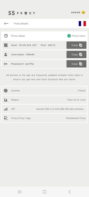 سادہ اور صاف انٹرفیس: صرف چند ٹیپس کے ساتھ دستیاب پراکسی آسانی سے دیکھیں — کسی پیچیدہ سیٹ اپ کی ضرورت نہیں ہے۔
