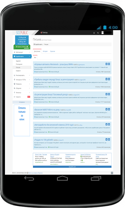 SOCPUBLIC заработок без вложений 1.0