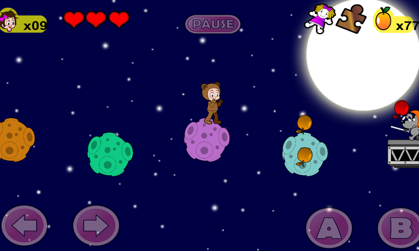 - Collect fruits and stars to win more lives;