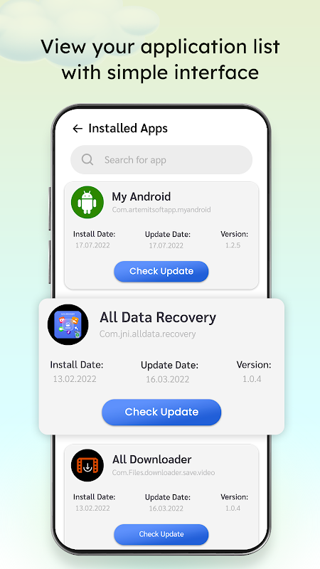یہ اپ ڈیٹ سافٹ ویئر ایپ اینڈرائیڈ سافٹ ویئر اپ ڈیٹس کے لیے ایک سمارٹ اسسٹنٹ کی طرح ہے، فون سافٹ ویئر اپ ڈیٹ کوئیک چیکر آپ کو اپنے فون ایپس کو اپ ٹو ڈیٹ رکھنے میں مدد کرتا ہے۔ یہ آپ کی ایپس کو اسکین کرتا ہے اور آپ کو ان چیزوں کی فہرست فراہم کرتا ہے جن کو اپ ڈیٹ کرنے کی ضرورت ہے، اس بات کو یقینی بناتے ہوئے کہ آپ کی ایپس ہمیشہ تازہ ترین Android ورژن پر موجود ہیں۔ یہ آپ کے موبائل آلہ پر ہر چیز کو آسانی سے چلانے کا ایک آسان طریقہ ہے۔