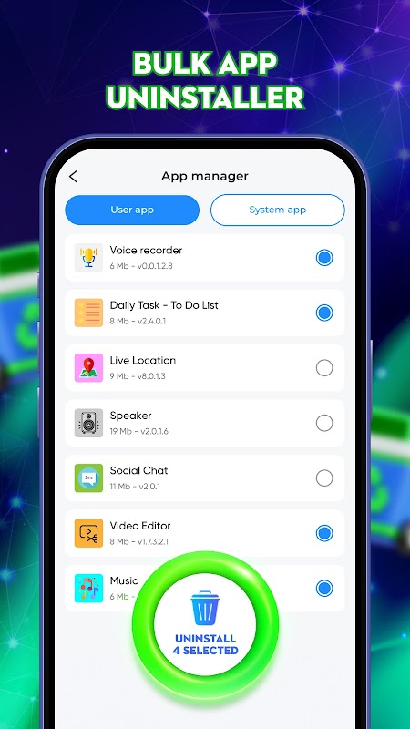 🗑️ فوری ان انسٹال: صارف ایپس کو براہ راست فہرست سے ان انسٹال کریں۔
