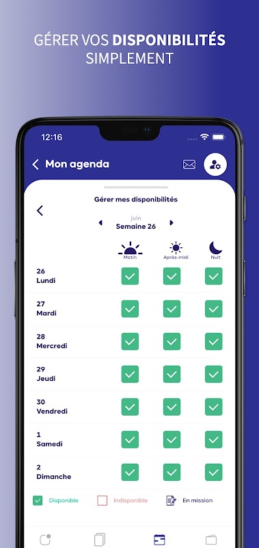 - اپنے شیڈول میں آپ کو سونپے گئے تمام مشنوں کو تلاش کریں، آپ کی دستیابی یا عدم دستیابی کی نشاندہی کریں،