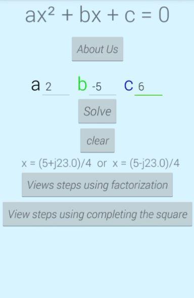 This app solve the equation and also show the steps it uses to solve the mathematical equation be it completing the square method or the quadratic formulae method.