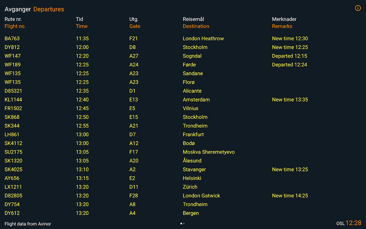 Up-to-date arrivals and departures for all airports in Norway.
