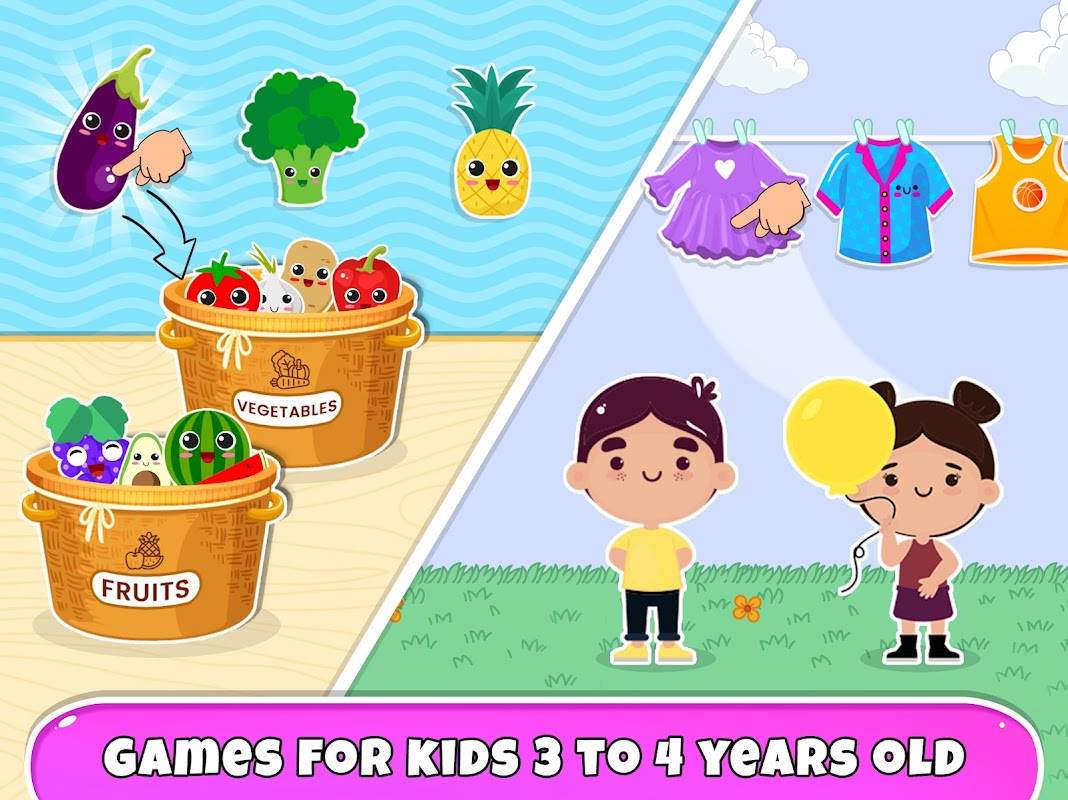 🎉 تفریحی منی گیمز: بیلون پاپ جیسے دلچسپ منی گیمز سے لطف اندوز ہوں جو سیکھنے کے عمل میں مزید لطف اندوز ہوتے ہیں۔ یہ انٹرایکٹو چیلنجز چھانٹنے اور ملاپ کی مہارتوں کو تقویت دیتے ہوئے لامتناہی تفریح کو یقینی بناتے ہیں۔