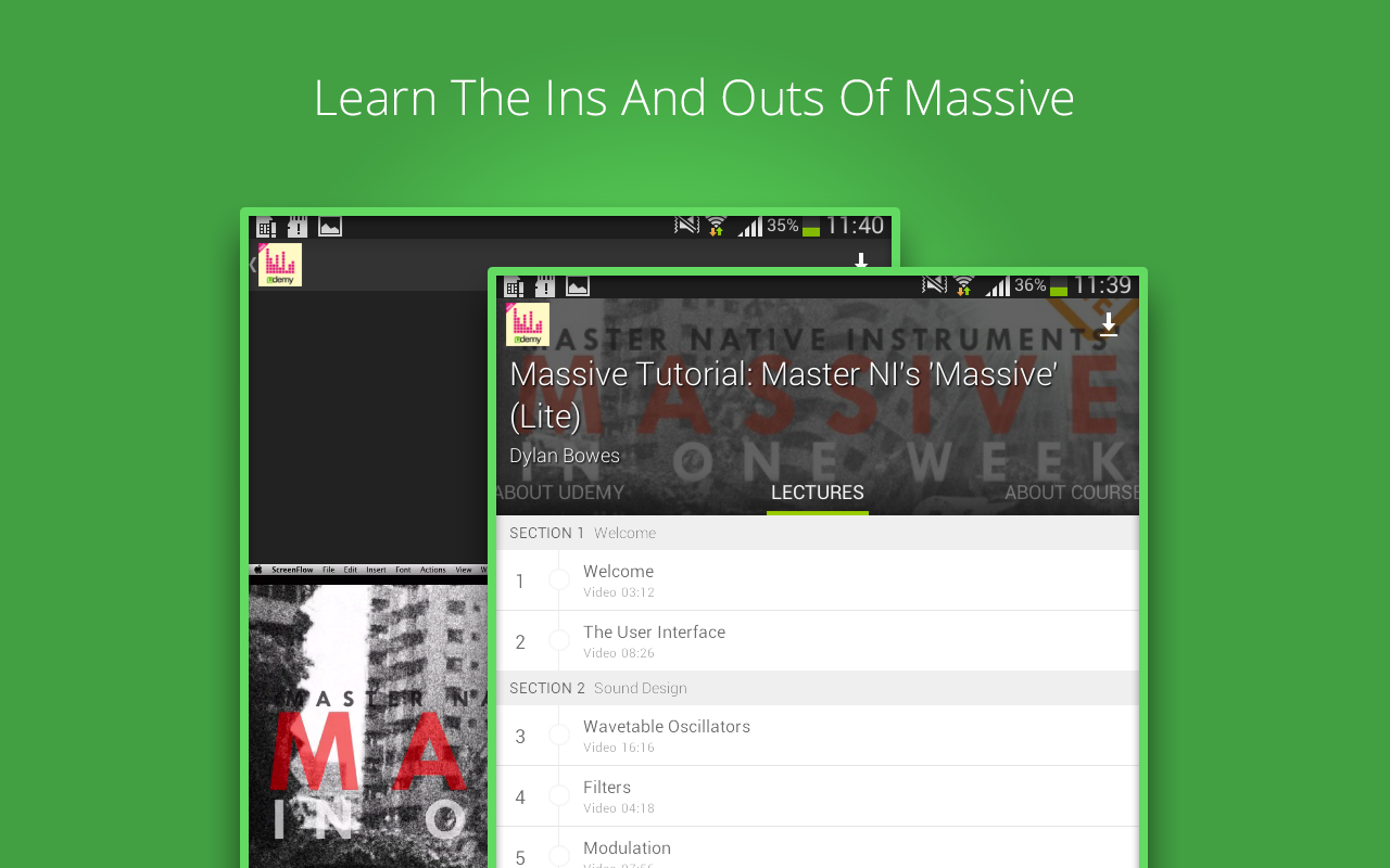 This course is a comprehensive training course in the popular and powerful "Massive" VST plug-in from Native Instruments. Using 100% high-definition screencasts, you will learn the ins and outs of this software. It is the free (lite) version of my full course on Massive.
