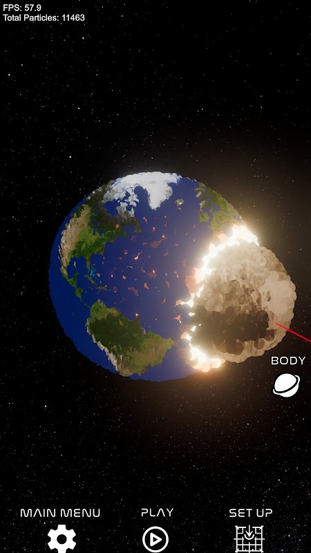 اسپیس کریش سمیلیٹر سیاروں کے تصادم کے لیے سموتھڈ پارٹیکل ہائیڈروڈینامکس (SPH) کے ساتھ پہلی موبائل ایپ ہے۔ ایک تفصیلی، فزکس پر مبنی تخروپن کے لیے ذرات کی ایک معقول تعداد چلانے والے مضبوط تخروپن کے ساتھ، حقیقی وقت میں سیاروں کے ٹکرانے اور ٹوٹتے ہوئے دیکھیں۔