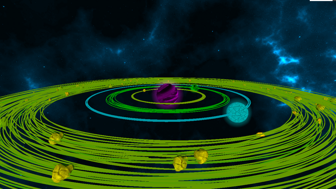 Follow a single planet on its path through your solar system or experience how asteroids build up asteroid belts!